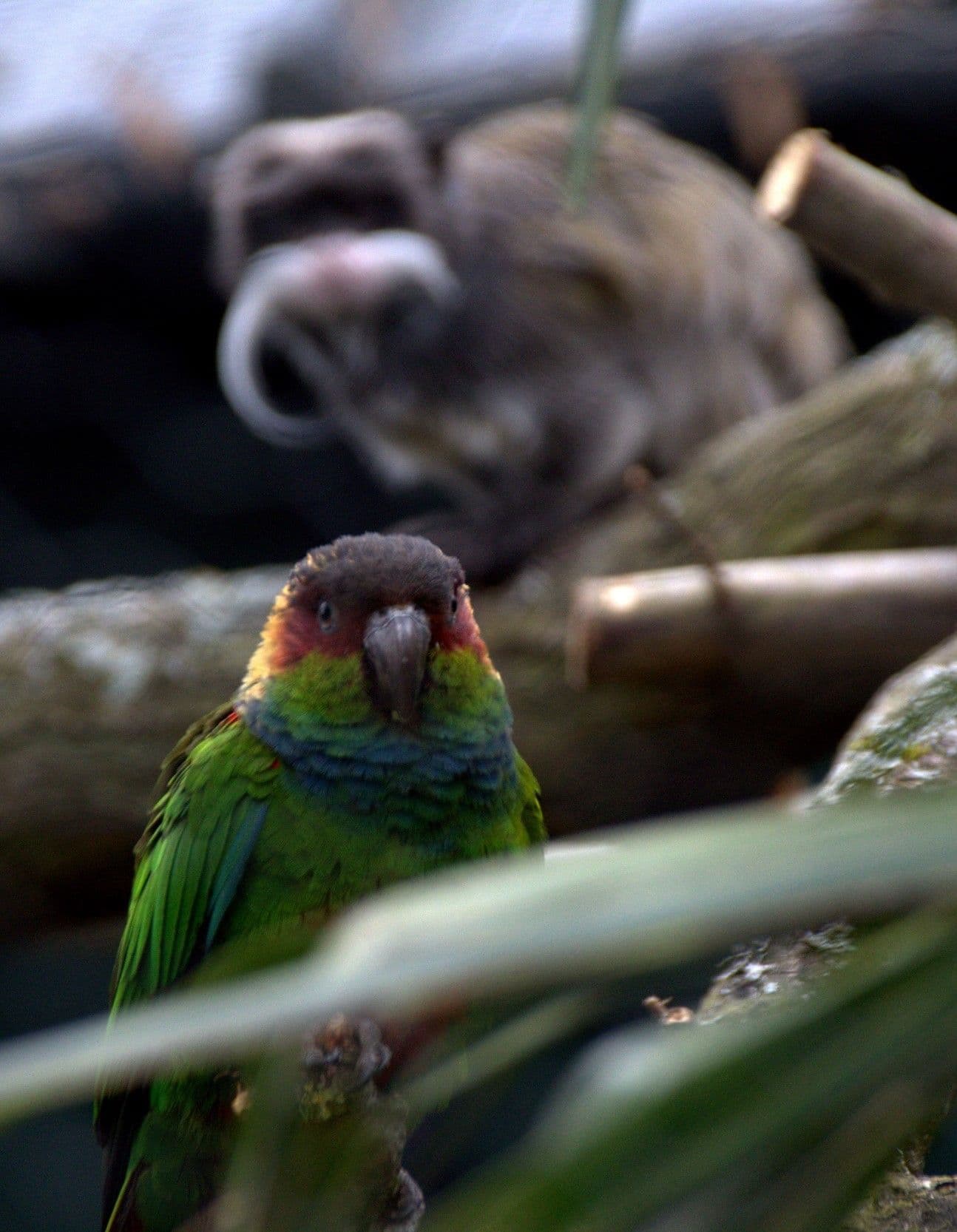La conure à poitrine bleue reste une espèce peu connue et encore peu présente en parc zoologique. La présentation en enclos multi-espèces facilite son accueil par les établissements, et permet ainsi de développer la population captive. Cette cohabitation offre divers avantages, comme l’augmentation de l’espace disponible pour les deux espèces et la possibilité pour les visiteurs d’observer des interactions interspécifiques uniques.